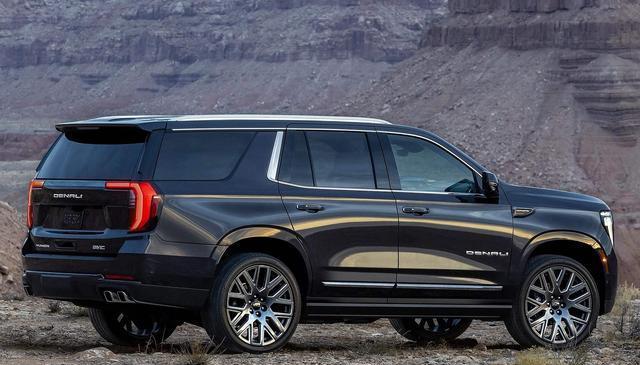 相比雪佛兰太浩来说,育空的定位更高端一些,售价区间为80.8万-89.8万。首先在外观方面表现的更豪华,中网采用大面积镀铬装饰,搭配C形日间行车灯,具有很高的辨识度,而且育空的车头很高,看起来气场十足,空气悬挂以及L2级驾驶辅助功能也是标配,展现出了性价比。